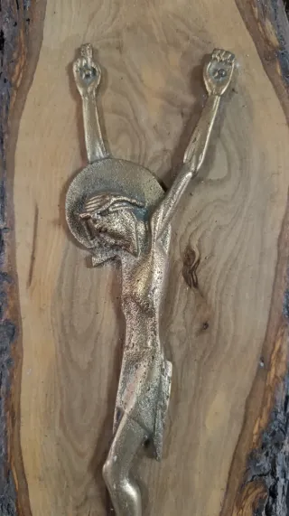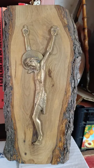 Crocifisso in bronzo su legno d'ulivo. Dimensioni altezza cm.32 larghezza 17.