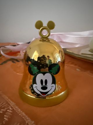 Deliziosa campanellina dorata a tema Topolino Disney, un pezzo da collezione introvabile. - Design con Topolino e dettagli natalizi. - Finitura lucida e dorata. - Decorazione a forma di orecchie di Topolino sulla sommità.accetto solo offerte a partire da 80 in su