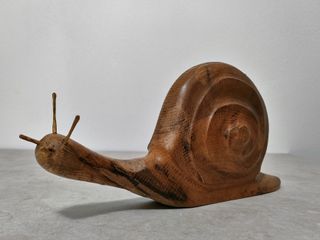 Soprammobile in legno di Rovere a forma di lumaca altamente dettagliato e interamente lavorato a mano. La levigatura a mano e il trattamento superficiale con cera ne esalta le venature e la bellezza del legno. Dimensioni di ingombro 28X14X6