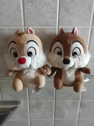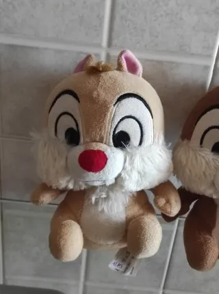 Set di due peluche celebrativi dei personaggi Disney Cip e Ciop. - Peluche morbidi e dettagliati. - Ideali per collezionisti e fan Disney.