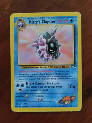 Carta Pokémon di Misty's Cloyster, numero 29/132. - Stage 1. - Pokémon: Bivalve. - Potere Pokémon: Shell Armor. - Attacco: Triple Cannon. - Illustratore: Ken Sugimori. - Anno: 1995, 96, 98 Nintendo, Creatures, GAMEFREAK ©1999-2000 Wizards.