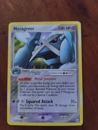 Carta Pokémon Metagross Stage 2. Un Pokémon de tipo Metal. - 100 HP. - Attacco Squared Attack 30x. - Poké-POWER Metal Juncture. - Illustrazione di Kouki Saitou. - Codice carta: 11/101.