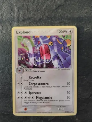 Carta Pokémon Exploud FASE 2. - 120 PV - Attacco: Corposcontro (30 danni) - Attacco: Megalancio (60+ danni) - Illustrazione di Hajime Kusajima - Codice: 3/106