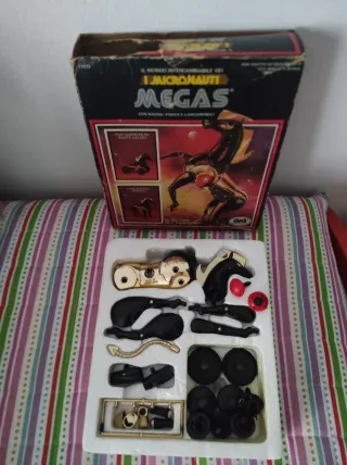 Set vintage dei Micronauti Megas della GiG, un classico giocattolo da collezione. - Parti intercambiabili. - Design ispirato ai robot. - Include vari componenti per il montaggio. Tutto come da foto. No istruzioni. Splendido. Personaggio e accessori in ottime condizioni. Polistirolo presente. Scatola messa bene tre lati su 4.