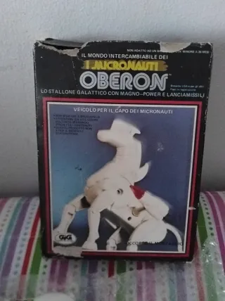 Veicolo spaziale Oberon dei Micronauts, un pezzo da collezione. - Cavallo galattico con magnete, potere e lanciarazzi. - Veicolo per i capi dei Micronautauti. Tutto come da foto. Manca solo uno zoccolo posteriore. Scatola bene ma non benissimo.