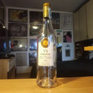 Bottiglia vuota di Cognac François Voyer. - VS Grande Champagne. - Prodotto in Francia.