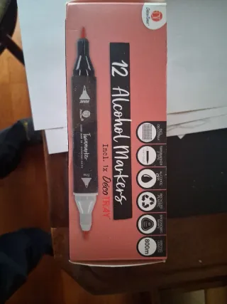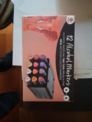 Set di 12 pennarelli a base alcolica. - Due punte: pennello e fine. - Inchiostro a base alcolica. - Realizzati con plastica riciclata.