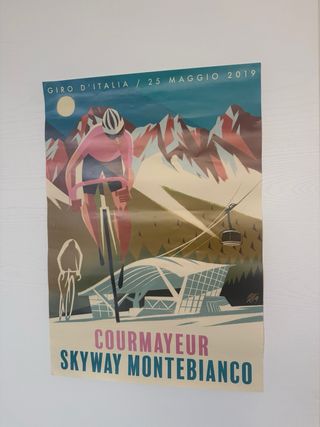 poster ufficiale del Giro d’Italia 2019, 14esima tappa da Saint Vincent a Courmayeur. Dimensioni 50x70 cm. Illustratore: Riccardo Guasco. Buone condizioni