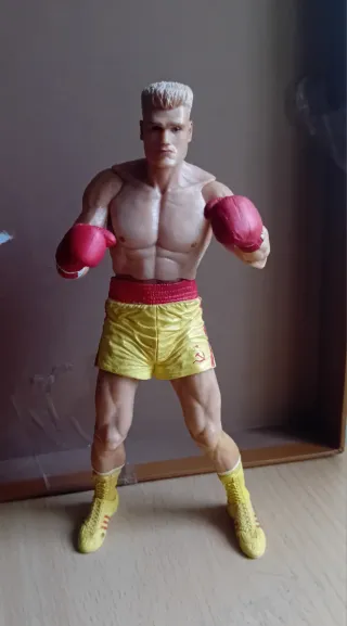 Action figure di Ivan Drago NECA dal film Rocky IV. - Dettagli fedeli al personaggio. - Guanti da boxe rossi. - Pantaloncini da pugilato gialli con dettagli rossi.