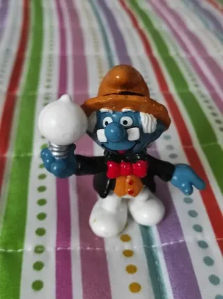 Statuetta del Puffo Thomas Edison, una variante rara, la n.3 - Puffo con cappello marrone. - Indossa giacca nera, panciotto arancione e papillon rosso. - Tiene in mano una lampadina bianca. Parte della collezione serie puffi storici,tenuto molto bene. Non presenta difetti evidenti.