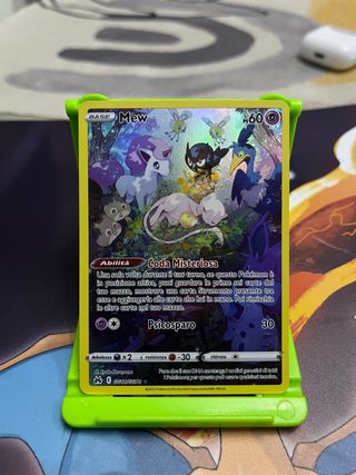 Carta Pokémon Mew dalla collezione Base Set. - Abilità: Coda Misteriosa - Attacco: Psicosparo - Punti vita: 60 - Debolezza: x2 - Resistenza: -30 - Costo di ritirata: 30