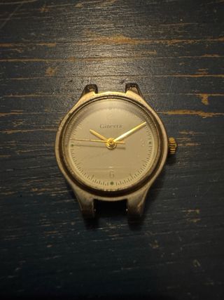 Orologio da polso Ginevra con carica manuale. - Quadrante chiaro con indici dorati. - Lancette dorate. - Corona di carica dorata. - l’orolgio presenta i segni del tempo - vendo come non funzionante o come ricambi io non sono in grado di farlo ripartire necessita di una revisione -le foto sono parte integrante della descrizione