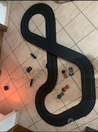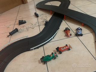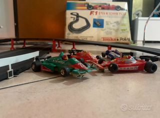 Pista TONKA POLISTIL F1 PROFESSIONAL con 4 automobiline e speed programmer che ti permette di gareggiare anche da solo con l auto avversaria che è autopilotata. 2 metri e 10 di lunghezza e 1 metro di larghezza nel punto più largo. Pista delle macchinine vintage degli anni 90. La scatola è un po' rovinata ma la pista è perfettamente funzionante. Contenuto delle confezione: Pista (come in foto) Trasformatore e cavetteria 2 joypad 1 speed programmer 4 automobili da f1 Guardrail in plastica Staffette per il sovrappasso È necessario solo cambiare i filetti metallici di contatto a delle macchinine.