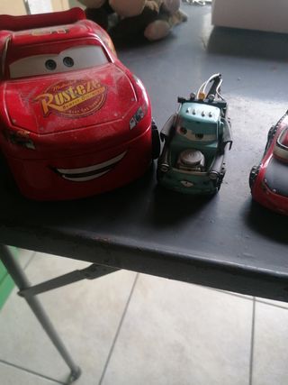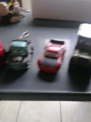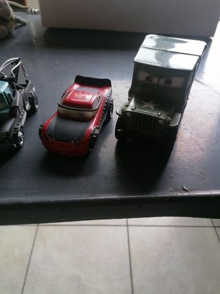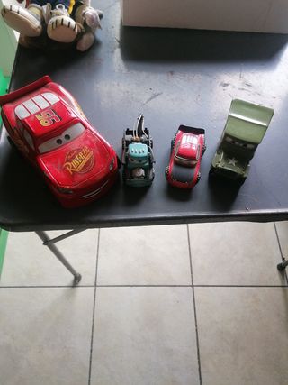 Vendo quattro macchinine di Cars, in buone condizioni. Sono leggermente impolverate ma in generale sono in ottimo stato. - Include Lightning McQueen, una gru, una macchina rossa e un veicolo militare. - Perfette per i collezionisti o per i bambini.