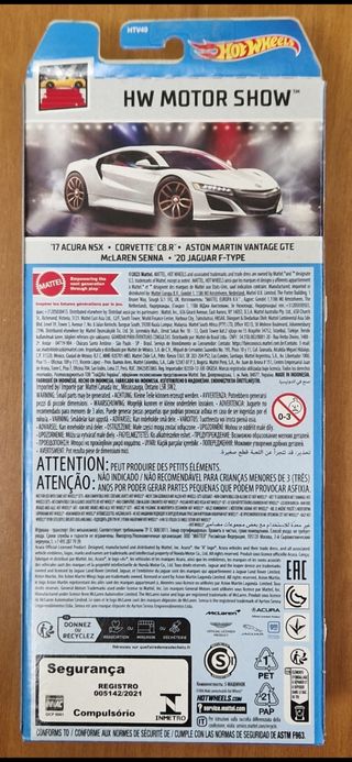 Bellissimo set HotWheels HW Motor Show con 5 macchinine. Sono nuove e in confezione originale. - Il set comprende: '17 Acura NSX, Corvette C8.R, Aston Martin Vantage GTE, McLaren Senna, '20 Jaguar F-Type - Scala 1:64 - Ottime condizioni