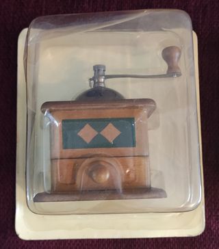 2 riproduzioni in miniatura di macinini da caffè. I volanti girano ma non macinano. Altezza circa 10 cm. Altre modelle nel mio profilo.