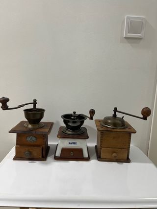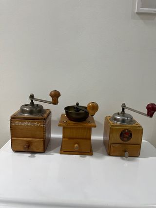 Set di macinini da caffè in stile vintage, perfetti per aggiungere un tocco rustico alla tua cucina o come pezzi decorativi. - Vari design e materiali. - Meccanismi manuali. - Ideali per collezionisti o amanti del caffè.