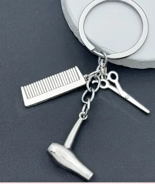 Set di due portachiavi a tema parrucchiere, perfetti per gli appassionati del settore. - Ogni portachiavi include un ciondolo a forma di forbici. - Ogni portachiavi include un ciondolo a forma di pettine. - Ogni portachiavi include un ciondolo a forma di asciugacapelli.