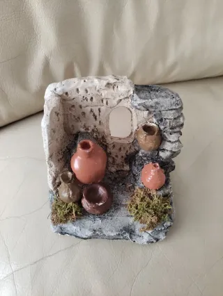 Accessorio per presepe con anfore e muschio. In resina. Integro. Dimensioni nelle foto. Tocco realistico al vostro presepe. Made in Italy. - Ambientazione rustica. - Dettagli in resina effetto pietra e muschio.
