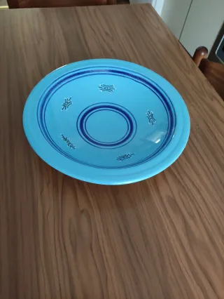 Spedizione solo tramite corriere Bartolini UPS o Inpost e Non con poste italiane per via delle dimensioni grazie. Elegante piatto in terracotta smaltata, perfetto per aggiungere un tocco di colore alla tua tavola. Dimensioni nelle foto. Provenienza: Tunisia. - Colore azzurro brillante. - Decorazioni circolari e motivi blu. - Finitura smaltata lucida.