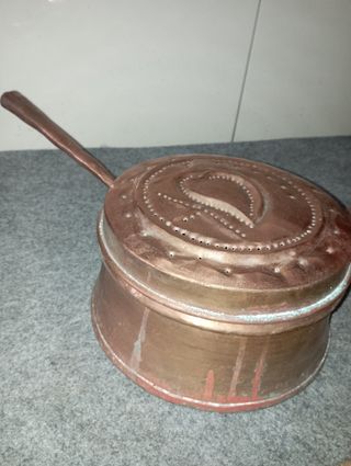 Antico scaldaletto totalmente in rame,decorato molto bello
