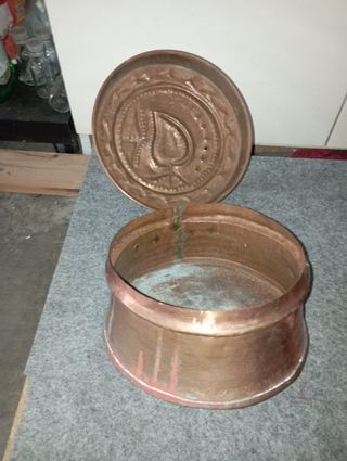 Lotto di oggetti vintage in rame, ideali per collezionisti o per chi ama lo stile retrò. - Pentola in rame con coperchio e manico. -Boccale in rame - trofeo di pesca -piccola lanterna -Scultura legno , tranne la pentola di rame che è nuova gli altri oggetti possono presentare segni normali del tempo