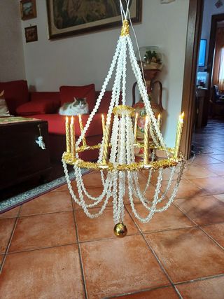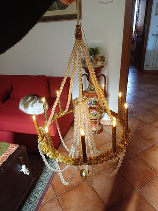 Lampadario di Natale anni 70 mobile, da appendere in qualsiasi ambiente della casa. Piccoli difetti alla base di tre candeline come da foto che non alterano la corretta funzione