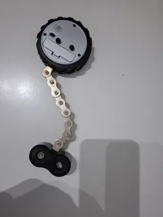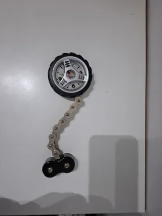 Originale orologio da scrivania a forma di ruota con catena. - Design unico a tema moto. - Base nera con viti a vista.