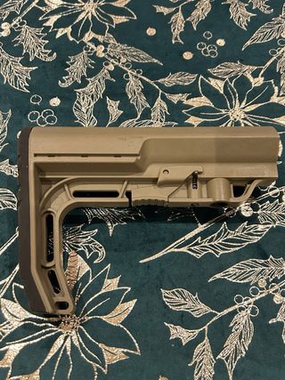 Calcio per fucile softair colore Tan. - Materiale plastico resistente. - Design regolabile. Umarex,Glock,Red dot,Sig sauer,Sotac,miltec,milspec,Beretta,VFC ,Tokyo Marui,midwest,strike industries,madbull,Magpul,pts,G&G Armament,Evolution,taran Tactical,Softair,airsoft,area,Colt,Gate,Asg,cybergun,devgru,Cyma,emg,noveske, double eagle,hfc,krytac,js Tactical,Olight,wadsn,kwa,lonex,We,well,bushnell,eotech,romeo,trijicon,aimo,holosun,vector optics,victoptics,theta optics,rmr,element,