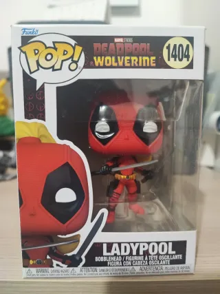 Funko Pop! Bobblehead di Ladypool, numero 1404, dal film Marvel Studios Deadpool & Wolverine. La figura è in perfette condizioni, ancora nella sua confezione originale. - Personaggio: Ladypool - Serie: Marvel Studios Deadpool & Wolverine - Numero Funko Pop!: 1404 - Tipo: Bobblehead / Figurina a testa oscillante
