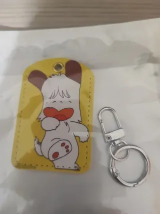 Portachiavi con personaggio Hello Spank. - Design su sfondo giallo. - Completo di anello e moschettone.