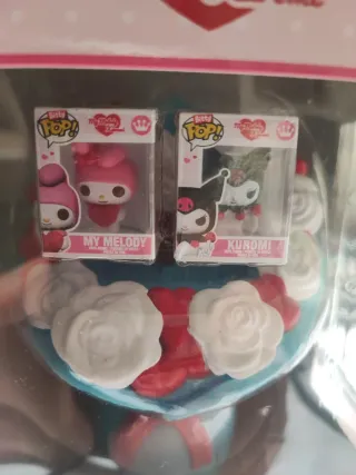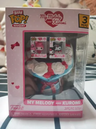 Set Bitty Pop! Bouquet con My Melody e Kuromi. La confezione include 3 pezzi. - Personaggi: My Melody e Kuromi. - Tipo: Funko Bitty Pop! Bouquet. - Licenza: My Melody and Kuromi.