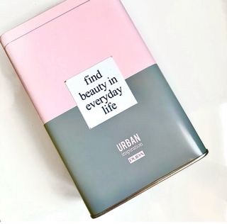 Elegante scatola in latta con un design raffinato nei toni del rosa e del grigio. Decorata con la scritta ispiratrice “Find beauty in everyday life”, è perfetta per conservare piccoli oggetti o aggiungere un tocco decorativo a qualsiasi ambiente.