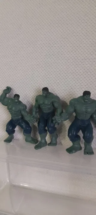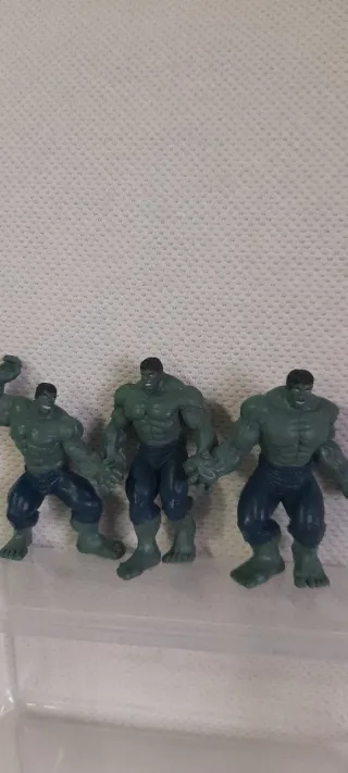 Tre action figure di Hulk, parte della collezione Sorpresine Dolci Preziosi del 2008 - Personaggi iconici del mondo Marvel. - Dettagli fedeli al personaggio.