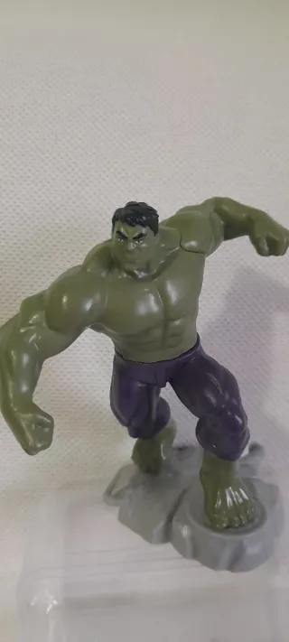 Personaggio di Hulk da Kinder Gran Sorpresa 2024. La figura è in plastica verde con pantaloncini viola h cm 14 - Personaggio: Hulk - Serie: Marvel Avengers - Edizione: Kinder Gran Sorpresa 2024