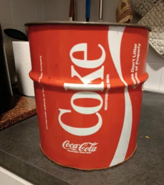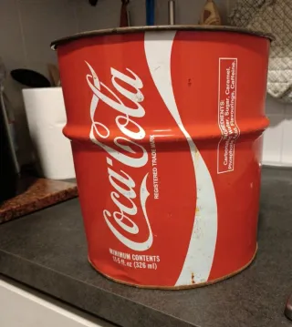 Latta Coca-Cola in stile vintage, risalente agli anni '70. Un pezzo da collezione in buone condizioni. - Design iconico Coca-Cola. - Colore rosso vivace. - Materiale metallico.