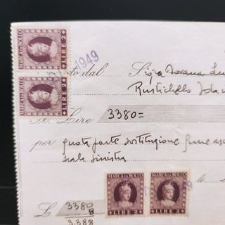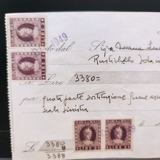 Ricevuta originale del 10-10-1923 con allegate marche da bollo. - Documento antico, datato e con timbri. - Perfetto per collezionisti di francobolli e documenti storici. - Le marche sono ben conservate, mostrando segni del tempo.