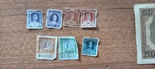 N.6 francobolli e n.3 marche da bollo da lire 5.000, n.1 marca da bollo da lire 300, n.1 marca da bollo lire 2.000 e n.1 marca da bollo lire 500. Sia i francobolli che le Marche sono tutte nuove come si vede nelle foto. Posso anche venderli singolarmente