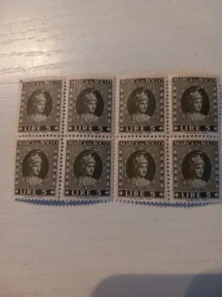 N.8 Marca da Bollo Lire 5 Italia Vintage francobol