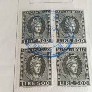 4 Marche da bollo lire 500,con annullo