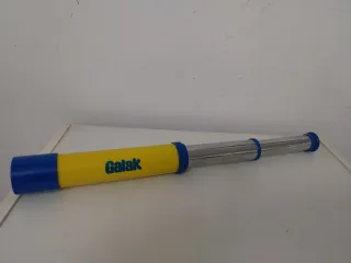 giocattolo con corpo giallo e dettagli blu. - Tubo telescopico in metallo. - Base e cappuccio in plastica blu. - Scritta Galak sul corpo.