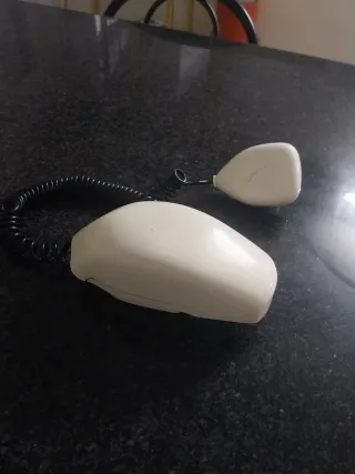 Cornetta di ricambio per telefono fisso, dal design retrò. NON TESTATO - Colore bianco avorio. - Cavo a spirale incluso.