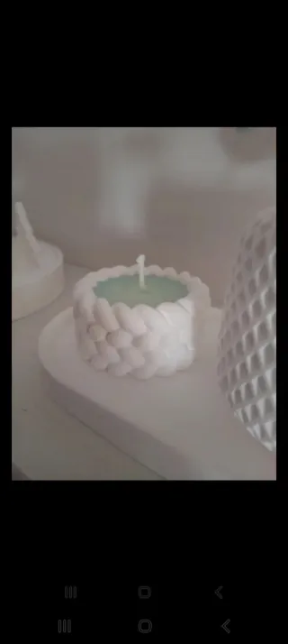 Deliziosa decorazione in gesso con candela . Perfetta per aggiungere un tocco di eleganza alla tua casa. - Design intrecciato in gesso bianco. - Interno con candela color menta.