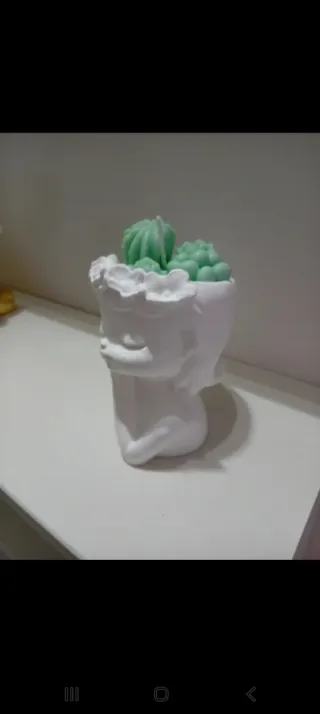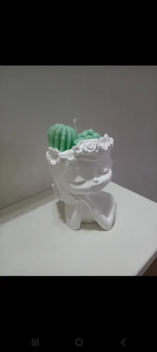 Deliziosa decorazione in gesso a forma di volto, con candele a forma di cactus e fiori. - Materiale: Gesso - Colore candele: Verde - Design unico