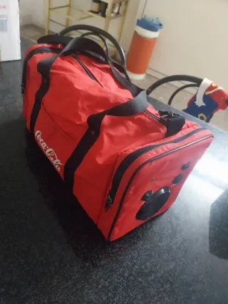Borsa sportiva rossa Coca Cola, un pezzo da collezione degli anni '90.RADIO DA TESTARE - Logo Coca Cola stampato. - Manici neri. - Tasca laterale con griglia. - Chiusura con cerniera.