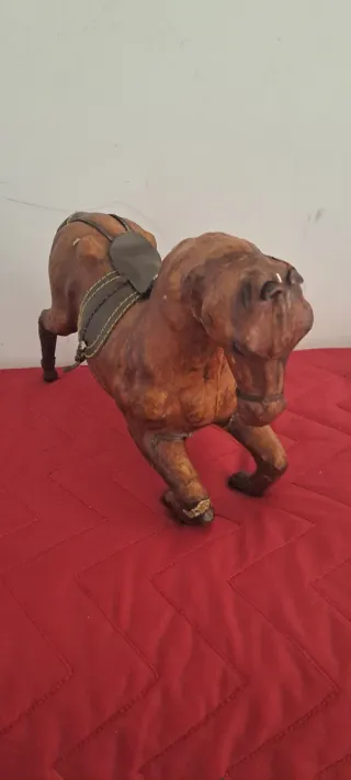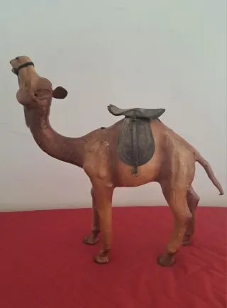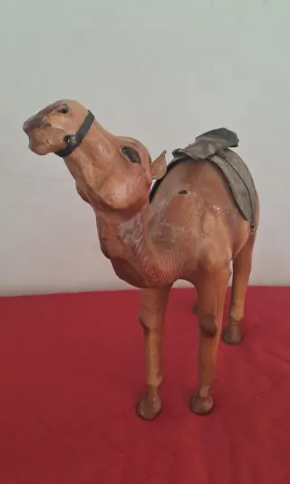 Scultura cammello lavorato con grande cura nei dettagli. Il materiale in cuoio lavorato a mano su struttura rigida, con sella in cuoio nero applicata. Caratteristiche: - Oggetto decorativo da collezione - Altezza circa 37 cm - Ottimo stato, segni del tempo minimi. - Ideale per ambientazioni orientali o natalizie.