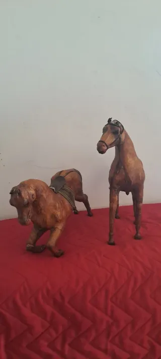 Bellissima coppia di sculture artigianali raffiguranti cavalli. Un pezzo unico per arredare con stile. - Realizzate a mano. - Materiale: cuoio e cuoio lavorato. - Dettagli curati.