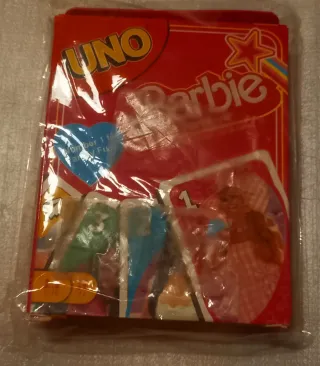 Pacchetto di carte Uno a tema Barbie. Perfette per i fan del gioco e della bambola iconica. Nuovissime.🌲🌲🌲⛄⛄⛄⛄🎁🎁🎁⭐⭐🎁⭐ - Design esclusivo Barbie. - Carte da gioco Uno. - Confezione sigillata.