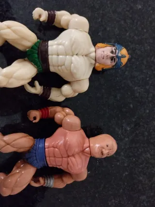 Due action figure di uomini muscolosi, ideali per collezionisti. - Personaggio con diadema blu e mutandine verdi. - Personaggio con fascia rossa e mutandine blu.