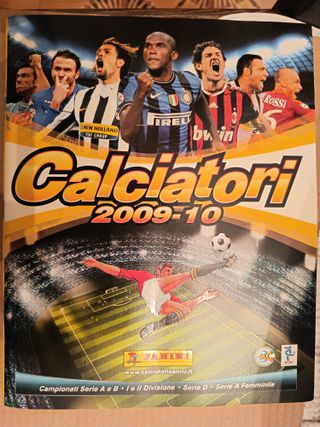 Album Panini Calciatori 2009-10. - Copertina con giocatori di calcio famosi. completo - Anno di pubblicazione 2009-2010. - Include Campionati Serie A e B, II Divisione, Serie D, Serie A Femminile.